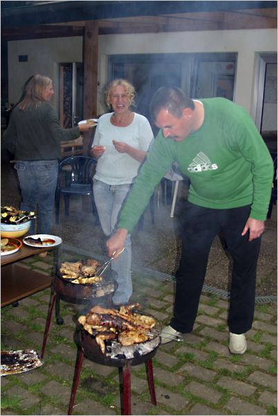 Pernot_Ricard übernimmt nach kläglichen Versuchen anderer Party-Teilnehmer die Aufgabe des Grill-Meisters. Sixta_II freut sich.