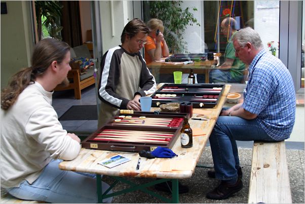 boomslang (links) und houtx im Vorrundenspiel, das im Schweizer Format ausgetragen wurde. Im Vordergrund wintom kibitzend.