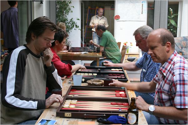 boomslang (links) gegen Hardy_whv. Am Tisch dahinter Joyce und houtx.