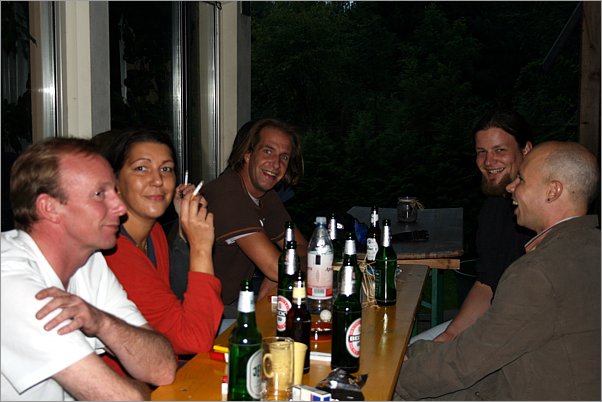 Backgammon-Smalltalk im Garten, während samirah, michaelsw und Kerstin drinnen kochten.
