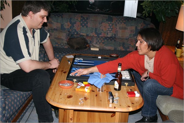 Familienduell in Runde 5: inim (links) gegen seine Schwester lilalu. inim konnte sich zum Turnierende freuen: In der Auslosung gewann er das gestiftete nagelneue Board.